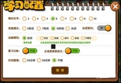 在“学习配置”里,家长可以自定义每天想要孩子学习的字数、答案提示需要的时间、是否展示动画、是否要“复习功能”、背景音乐、以及时间管理。
