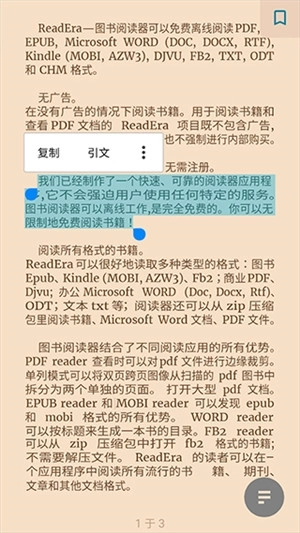 2、进入阅读界面后,可通过双指缩放搭配长按来选中指定的文字