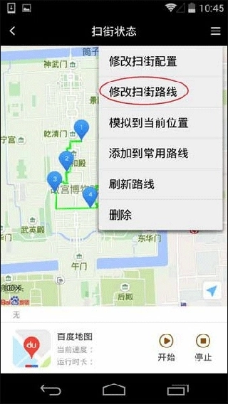 2、进入扫街状态页面,点击修改扫街路线;