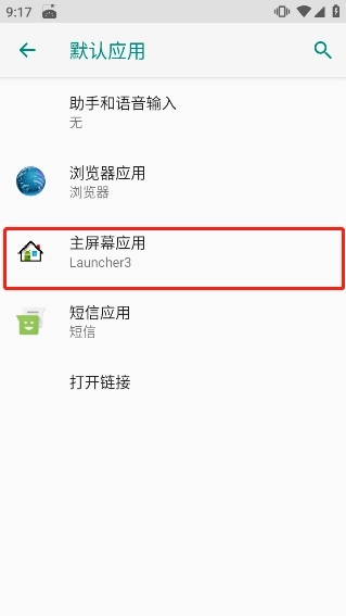 3、进入系统默认应用启动界面,打开“主屏幕应用”