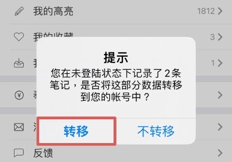 游客同样能够添加笔记与进行高亮操作。要是游客注册了账号,系统会询问是否转移数据,此时请选择“转移”。