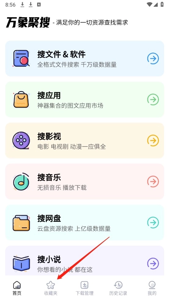 1. 打开app,点击底部菜单栏中的“收藏夹”页面。