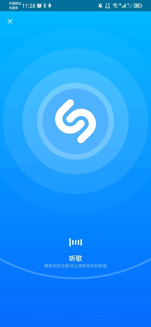 1、打开app后,轻点中间的图标按钮开始识别音乐,长按图标可开启自动识别