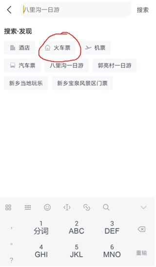 2、点击火车票。
