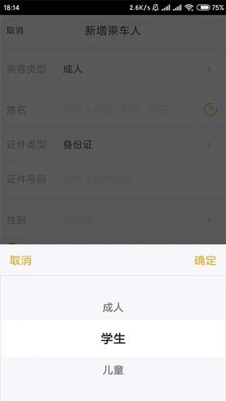 7、在乘客类型处选择学生,输入信息。
