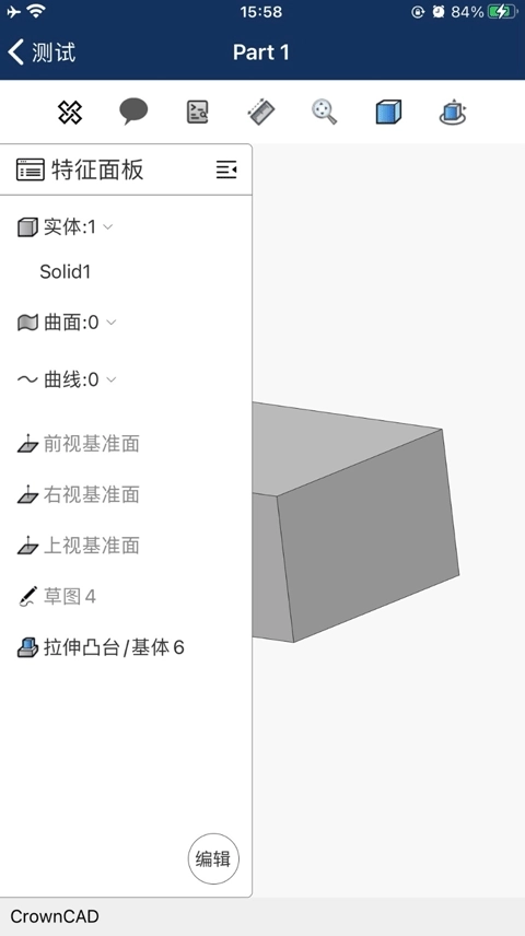 特征面板:呈现当前零件的构成、基准面以及建模特征,用户能够对特征的显示与隐藏进行选择。在APP中,暂时无法支持对零件的编辑操作。若需编辑零件,可通过浏览器端来达成对零件的编辑。