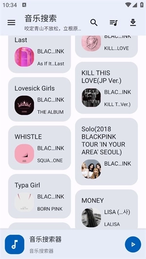 2、您能够点击搜索栏,搜索自己喜爱的歌手或者歌曲,例如Blackpink 。