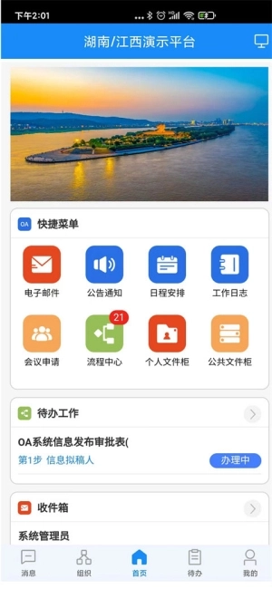 这款软件中的各类办公功能十分好用,在首页能看到各类内部新闻,可随时助力用户提高工作效率。其界面设计较为简约,能契合众多用户的办公习惯。