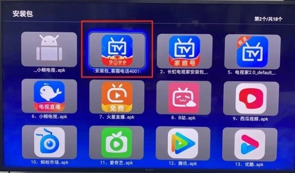 注:部分电视插入U盘后会自动弹出安装包入口,也可以直接点击 安装包。