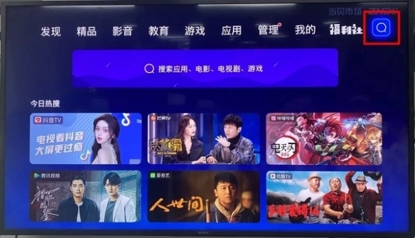 第二步:进入当贝市场后,找到 搜索。