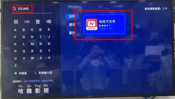 第三步:在搜索里输入字母 DSJMD,找到 电视节目单软件打开。