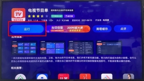 第四步:打开电视节目单,接着用遥控器按方向键,顺序为:左键 - 右键 - 左键 - 左键 - 左键 - 右键,操作完成后,屏幕便会开始下载安装电视家,安装完毕打开即可使用。