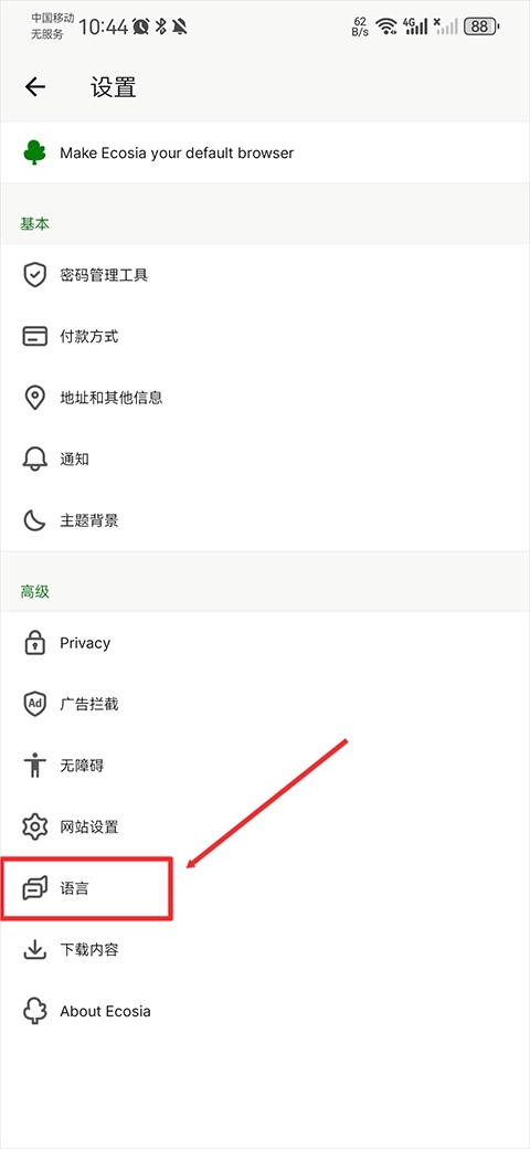 3、进入设置页面后点击语言功能