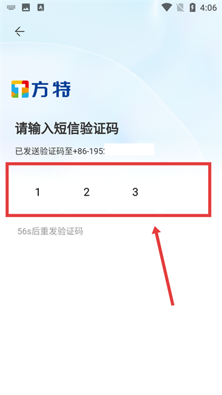 在验证码输入界面,填写收到的短信验证码,以完成登录流程。