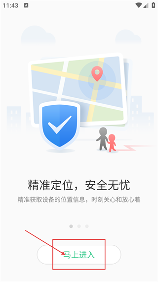 在应用引导页点击【马上进入】按钮,就能进入应用主流程,这款应用主要提供精准定位与安全守护类服务。