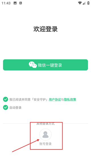 登录界面提供【微信一键登录】功能,您也可以点击【账号登录】来选择其他登录方式,使用前请先勾选同意相关协议。