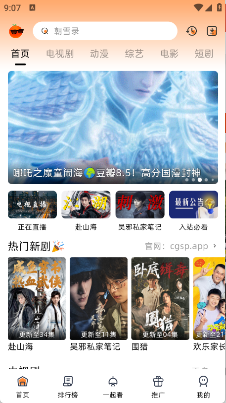 首页涵盖多种影视类别,包括电视剧、电影和综艺等。