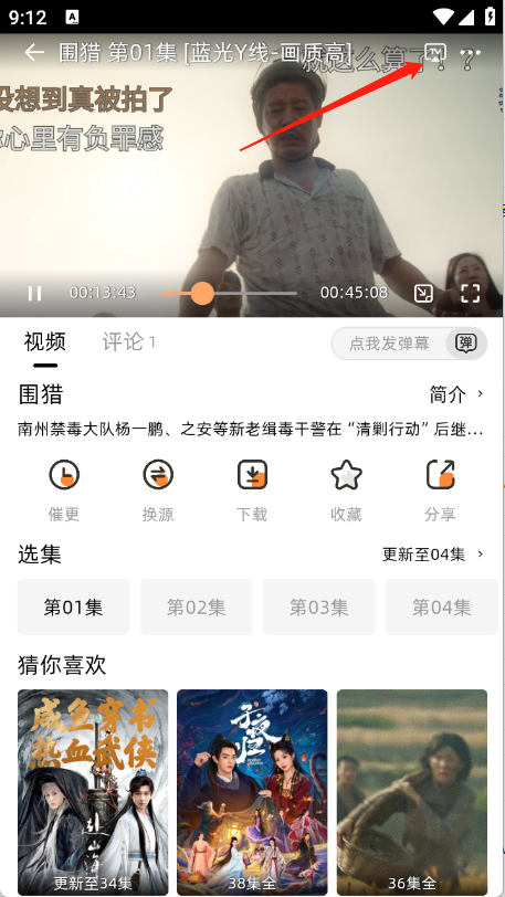 打开你想观看的影片进入播放界面后,点击右上角的“TV”按钮。